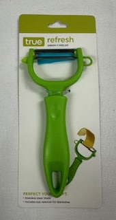 Green Y-Peeler – Perfect your Craft. Stainless steel blade. Includes eye remover for blemishes.
